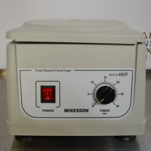 McKesson 1343D CENTRIMcKesson Fixed-Speed Centrifuge Model 602F Fixed speed of 3,400 RPM Six-place fixed-angle rotor (5-10 mL) 30-minute timer 90-day warranty ...