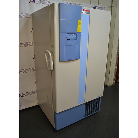 This Thermo 906 is used and reconditioned. Before anything else, our technicians test freezers using a digital temperature probe to verify the accuracy of temperature controls and readouts. We replace any hardware or parts as is necessary and clean all freezers thoroughly prior to shipment.