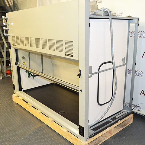Most of our equipment is used and reconditioned. Our technicians inspect all fume hoods to make sure that the baffles are present and intact, the interior lights are functioning, and that the sash is intact and runs smoothly on the tracks along with the counterweights. We can also provide information on the fixtures installed on each hood. Please note that we do not provide blower motors with fume hood sales. For more information on blower motor selection please feel free to call or email us; we recommend speaking with an HVAC specialist regarding your particular motor needs.