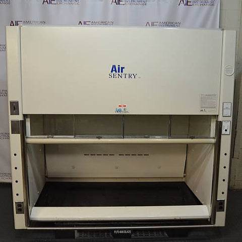This Lab Crafters Air Sentry is used and reconditioned. Our technicians inspect all fume hoods to make sure that the baffles are present and intact, the interior lights are functioning, and that the sash is intact and runs smoothly on the tracks along with the counterweights.