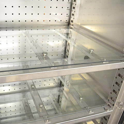 The interior is polished stainless steel, which is highly resistant to corrosion and easy to clean. And the “tool-less” interior design allows you to remove the interior components effortlessly for routine cleaning or to set up multiple configurations. The units come standard with leveling feet and casters, which make installation and relocation easy.