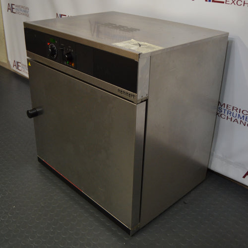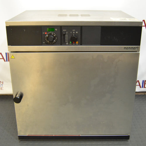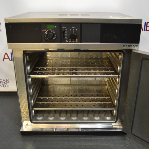 The Memmert Forced Convection Oven Model ULE500 is a forced convection oven that features a 6-step regulation of ventilation (fresh air supply); is constructed from acid resistant steel; has an auto-diagnostic system with failure indication; and manually set alarm for too high temperature.