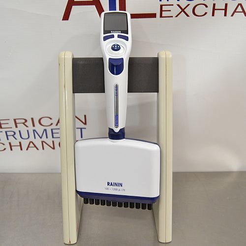 The Rainin E4 XLS 100µL – 1200µL 12-channel electronic pipette features multiple modes for most pipetting needs, memory to save common protocols and reduce human error, intuitive operation and joystick graphical navigation.  Requires LTS tips, available from Rainin. Stand not included.