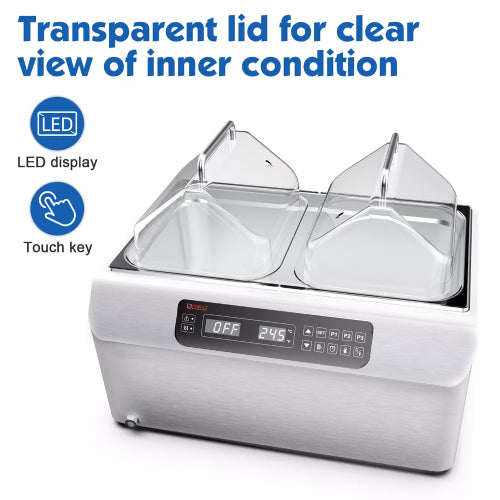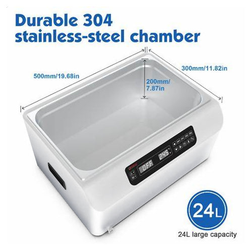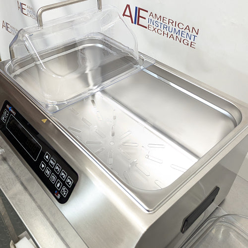 The basin is manufactured of high-grade stainless steel that resists corrosion and is easily cleaned. The glass touch panel allows for temperature and timer controls with three configurable program buttons for quick launching of temperature setpoints.