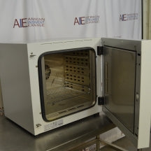 Most of our equipment is used and reconditioned. Our technicians test ovens using a calibrated digital chart recorder to verify the accuracy of temperature controls and readouts and run the unit under vacuum to ensure chamber integrity. We typically leave an oven under vacuum for 24 hours to make sure the pressure holds. We replace any hardware or parts as is necessary and clean all incubators thoroughly prior to shipment.