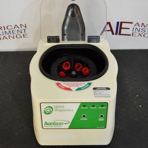 This Quest Diagnostics Horizon 642E is used and reconditioned. Our expert technicians meticulously test every centrifuge to ensure optimal performance and reliability, leaving no detail overlooked. They thoroughly balance the rotating assembly, inspect the bearings, seals, and gaskets, and confirm the proper functioning of all controls.