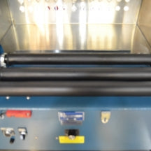 The drive arrangement provides a speed range of approximately 20 to 300 r.p.m. on the 2 diameter rollers. Speed adjustment is made by turning a dial at the front of the machine. Standard electrical service for this machine is 110V, single phase, 50/60 hertz. A standard outlet plug and cord is provided with the machine.